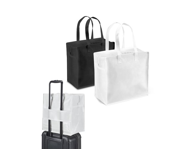 Sacola em non-woven (80 g/m²) termo-selado com alças de 55 cm. 480 x 380 x 85 mm